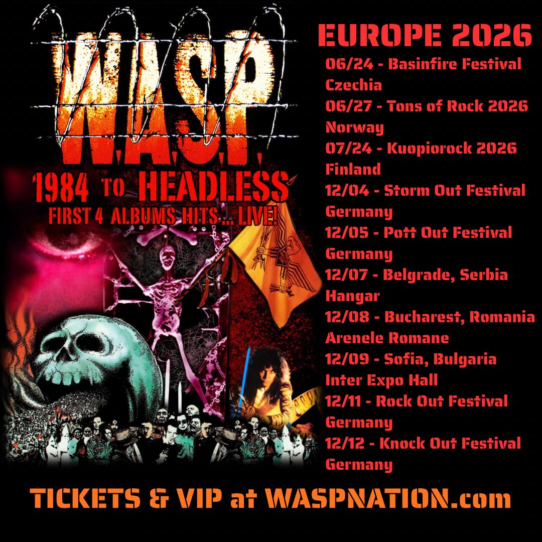 W.A.S.P. announces ten European shows as part of the “1984 To Headless” 2026 Tour paying tribute to their 1st Four Albums… Live! Selected Hits from W.A.S.P.’s 1st Four Albums promise to create a True Rock ‘N Roll Spectacle complete with a Live Stage Show bringing those Albums Alive for the 1st… and Only Time. The Band will take the “1984 To Headless” Tour to Europe and the World in 2027.