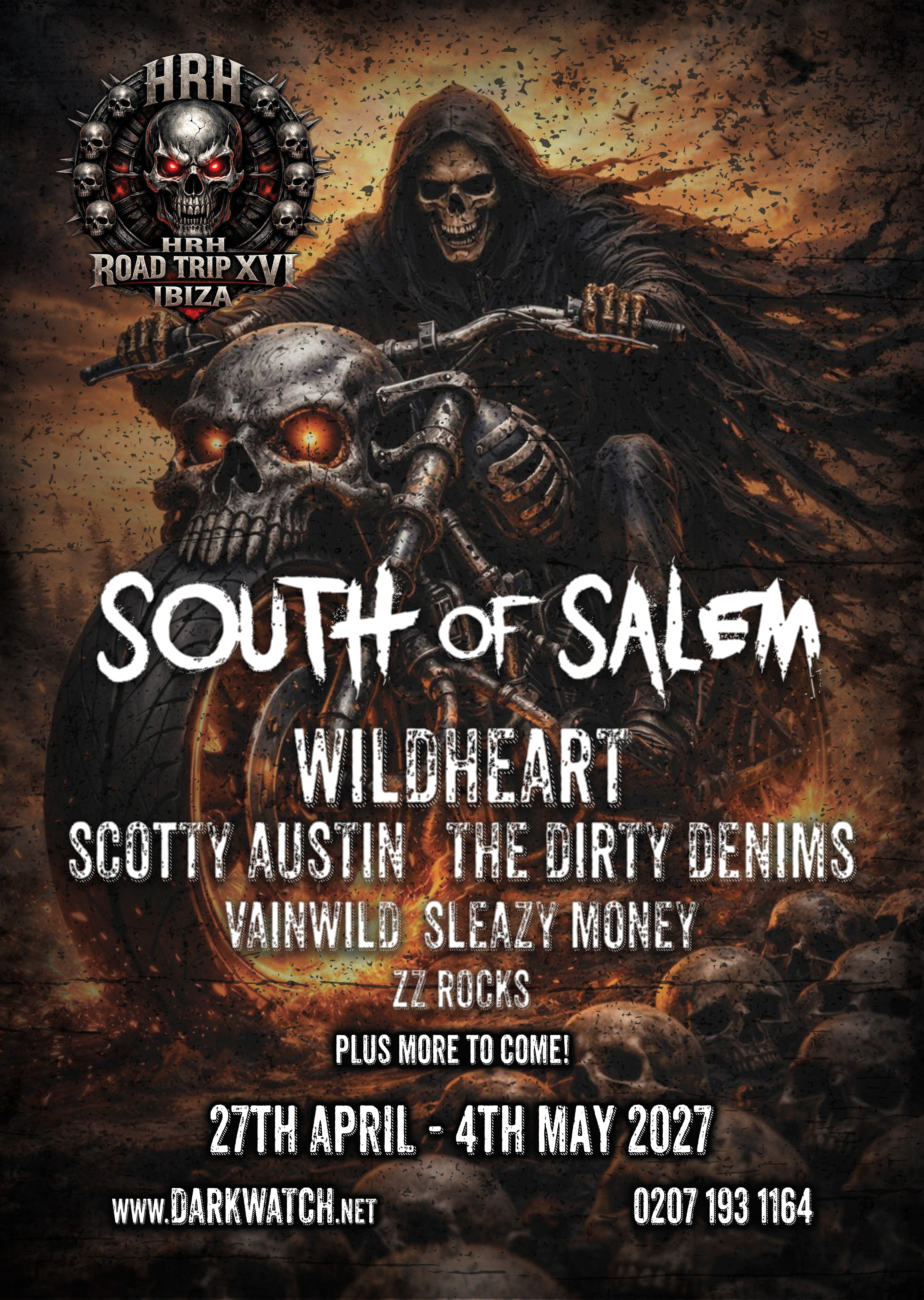 Headlining HRH RT16 are South of Salem who are blasting onto the scene with an 80s-inspired hard rock sound that will send your adrenaline soaring. Merging horror elements with modern metal production, their explosive performances promise a night filled with goosebumps and high-octane energy—perfect for the HRH biker brigade looking for that thrill!